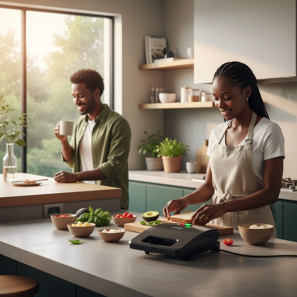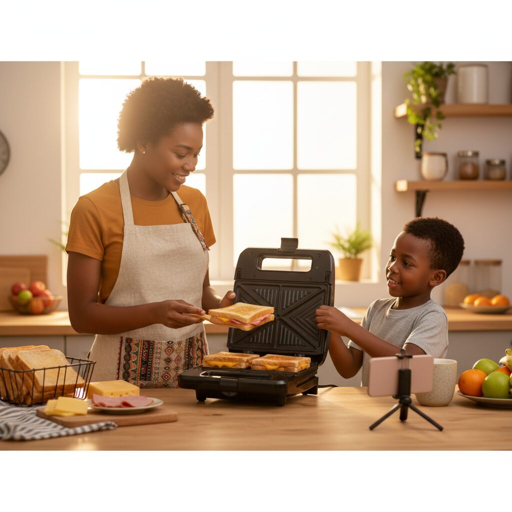 Réinventez vos pauses gourmandes avec l’appareil à sandwich LSMO ! Que ce soit pour un petit-déjeuner rapide, un déjeuner sur le pouce ou un dîner réconfortant, cet appareil est votre allié idéal pour des repas savoureux en quelques minutes. Grâce à ses plaques au revêtement antiadhésif, vos croque-monsieur et paninis doreront à la perfection sans attacher, garantissant un nettoyage ultra-simple. Son design noir, sobre et élégant, s’intègre harmonieusement dans toutes les cuisines. Compact et astucieux, il se range facilement à la verticale pour un gain de place optimal. Les témoins lumineux vous indiquent quand l’appareil est sous tension et prêt à l’emploi, tandis que la poignée thermo-isolante et le loquet de verrouillage assurent une utilisation en toute sécurité. Partagez des moments délicieux en famille ou entre amis et dégustez des sandwichs chauds et croustillants à tout moment de la journée. Avec LSMO, l’art de recevoir sans effort prend tout son sens !