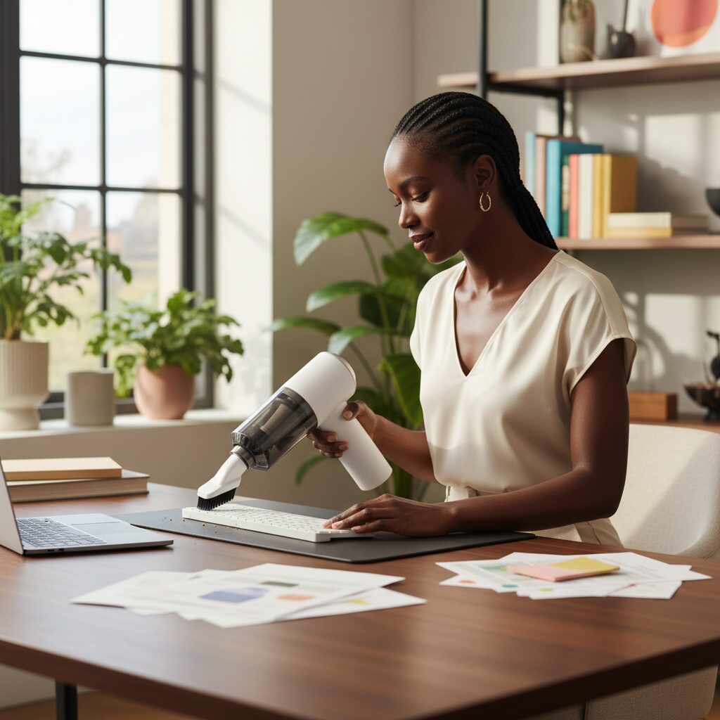 Un accident de clavier ? Des poils d’animaux sur le canapé ? Une retouche rapide avant l’arrivée des invités ? Son design léger et sa puissance d’aspiration en font l’outil parfait pour les petits nettoyages du quotidien. Fini le besoin de sortir le gros aspirateur pour les petites saletés.