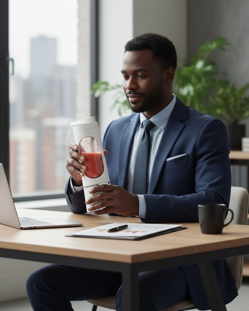 Découvrez la révolution du mixage personnel avec notre Blender Portable. Conçu pour s’adapter parfaitement à votre rythme de vie urbain et actif, il est l’allié indispensable de votre bien-être.