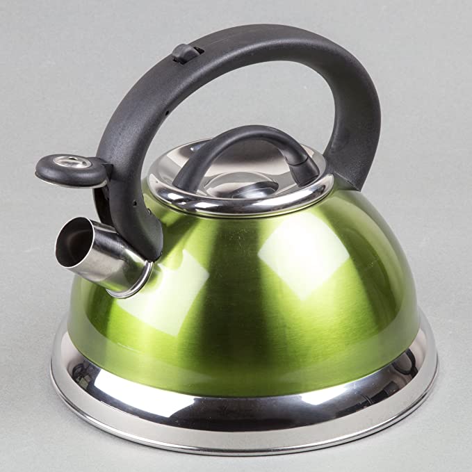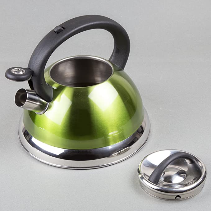 Shop Bouilloire sifflante en acier inoxydable de 3 l avec fond en aluminium pour une répartition homogène de la chaleur, chartreuse métallique