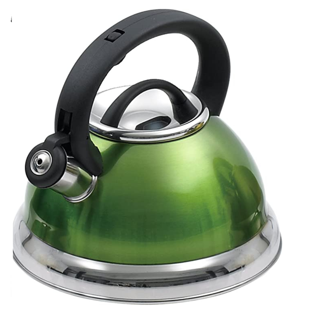 Bouilloire sifflante en acier inoxydable de 3 l avec fond en aluminium pour une répartition homogène de la chaleur, chartreuse métallique