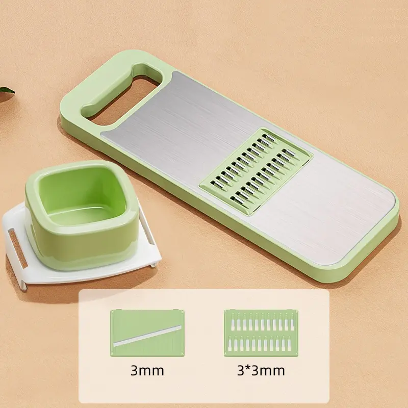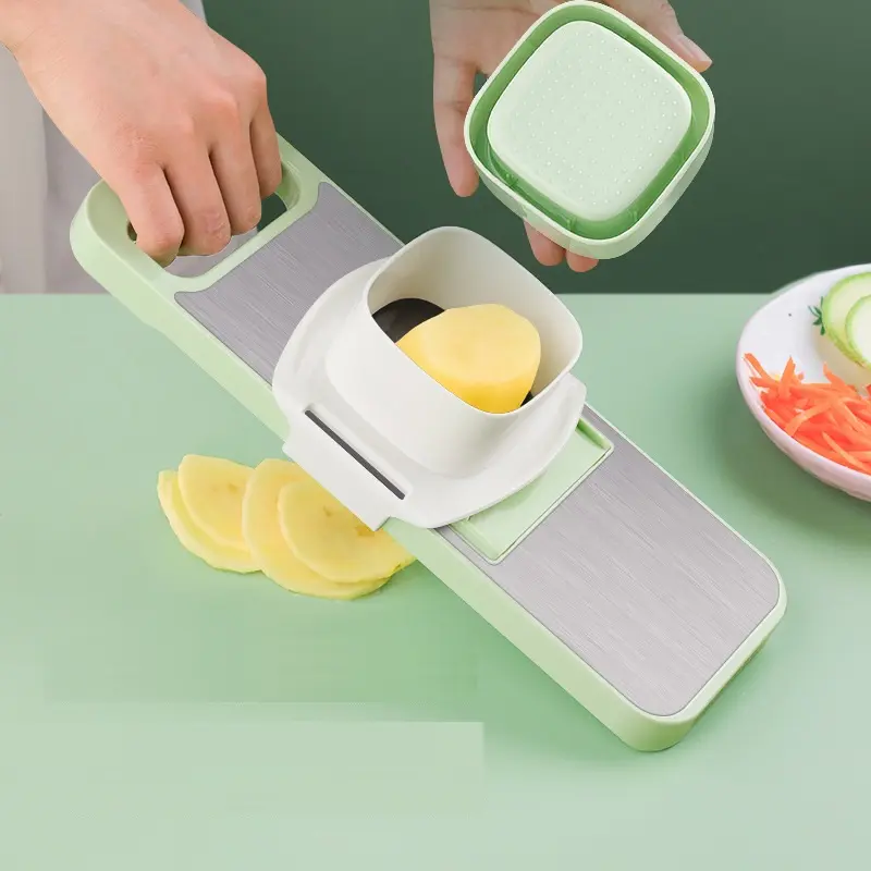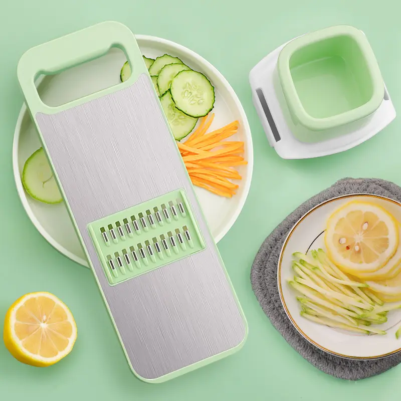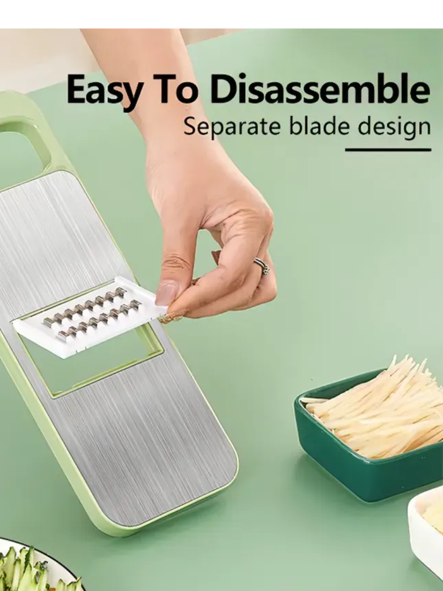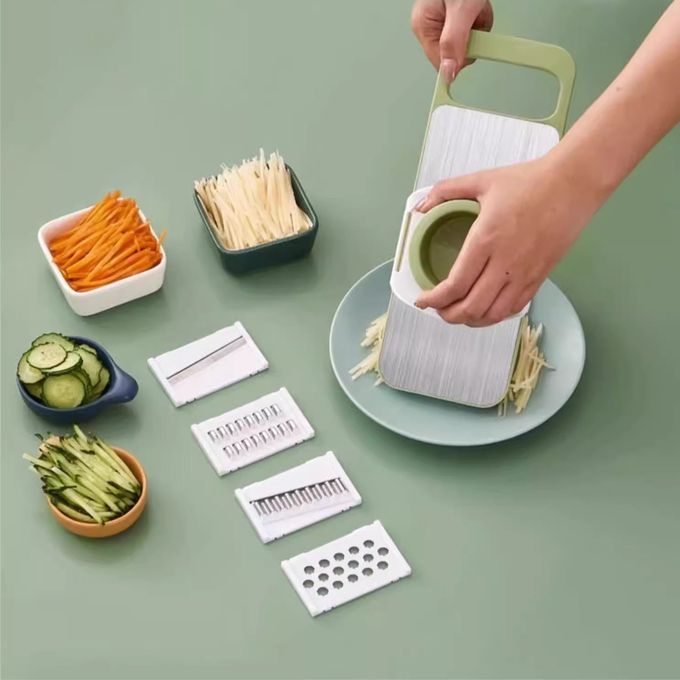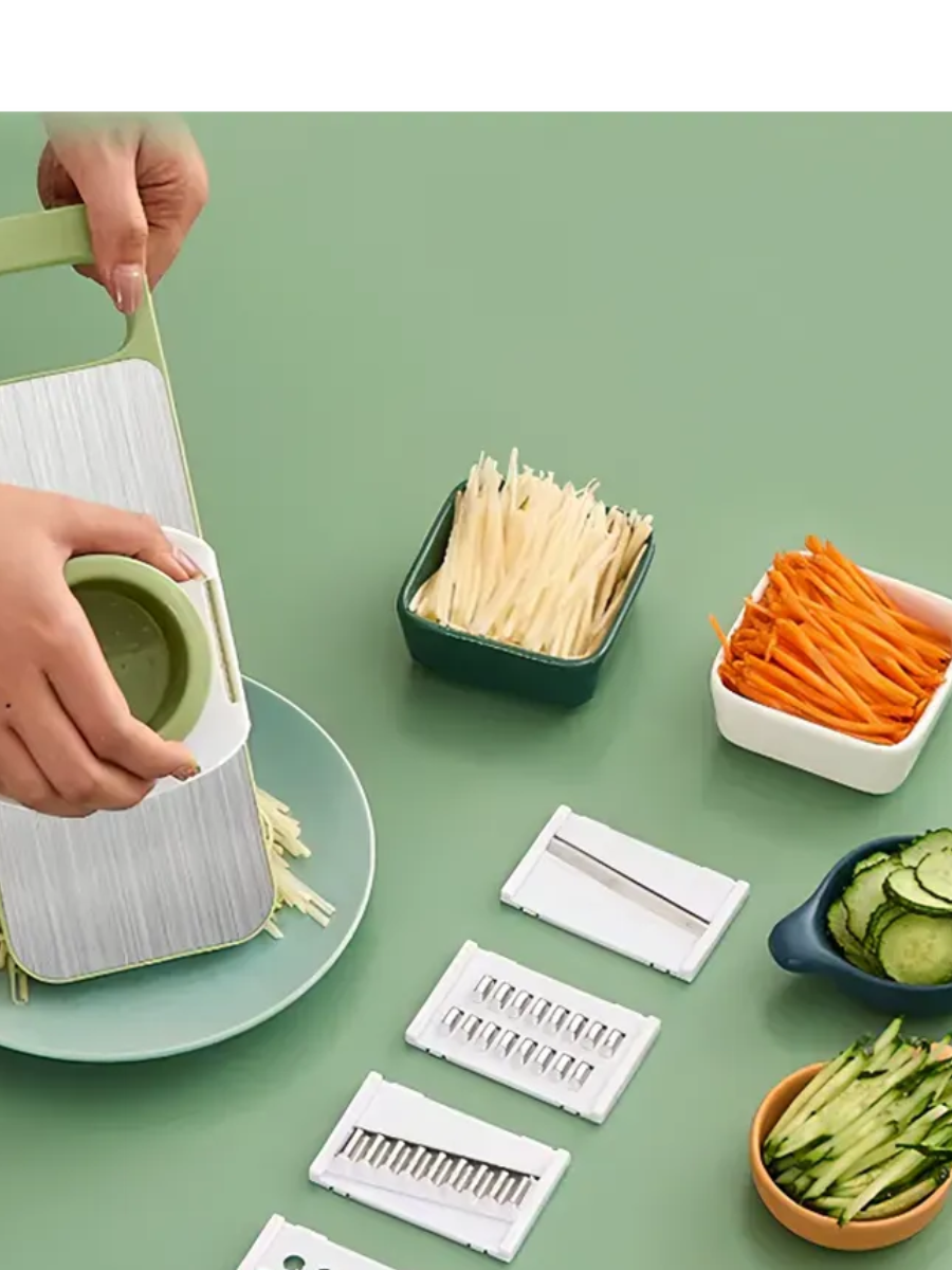 ✔️ Polyvalence maximale avec 5 lames pour trancher, râper, émincer, couper en julienne et en dés.