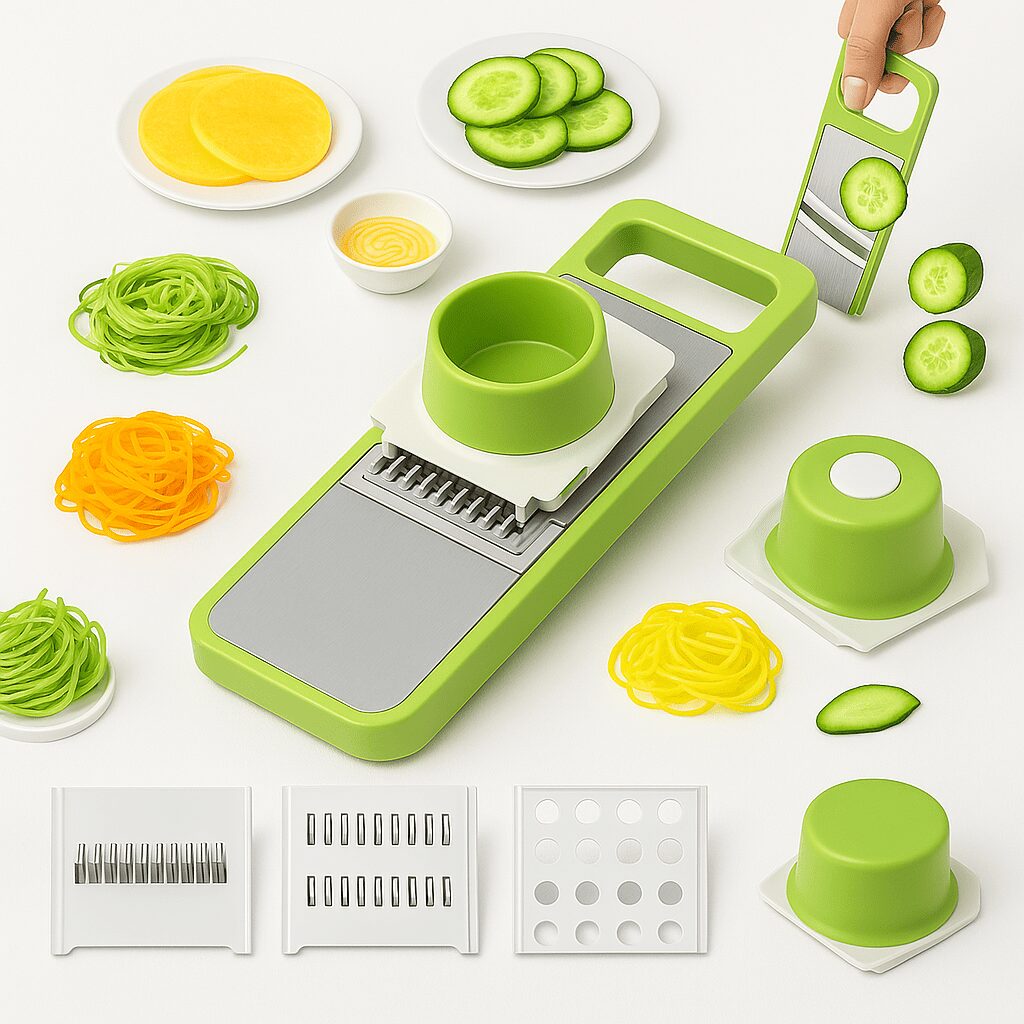 Coupe-légumes multifonction 7 en 1 – Tranche, râpe et spiralise facilement vos fruits & légumes !