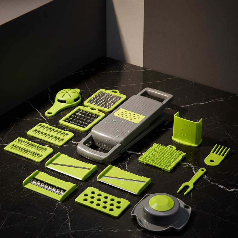 Coupe-Légumes Multifonction Pro 12-en-1 : Trancheuse, Hachoir et Mandoline de Cuisine
