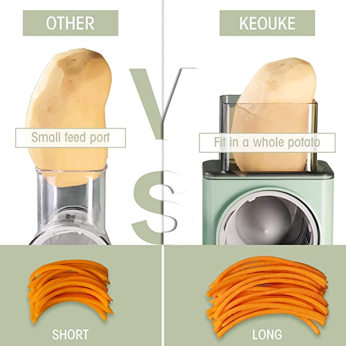 - 🥕Conception robuste améliorée: par rapport à la râpe à fromage rotative traditionnelle, la zone de la ventouse est plus grande, la force d’aspiration est plus forte et le travail est plus stable. La poignée est conçue avec une structure en spirale, il n’y a donc plus le problème de rupture de pression. Le port d’alimentation est également devenu plus grand, ce qui peut être inséré dans des aliments plus larges, et le fil coupé est devenu plus long.