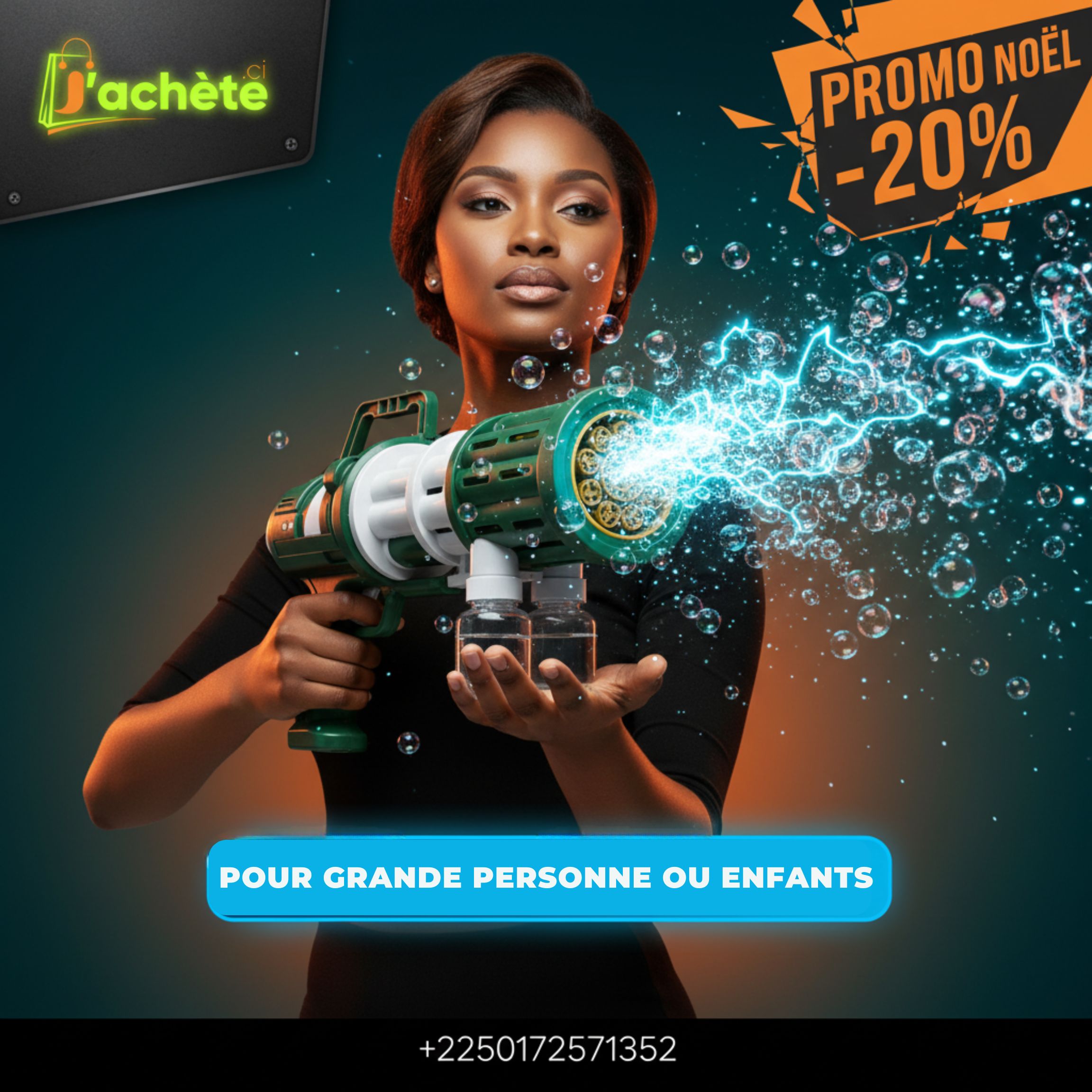 Introduisez une dimension spectaculaire à vos célébrations avec notre Pistolet à Bulles Géant Électrique, le joyau de notre collection ‘L’Art de l’Éclat’. Conçu pour transformer n’importe quel espace en un paysage de rêve, ce générateur de bulles de style bazooka est l’accessoire ultime pour insuffler de la magie et de la joie. Que ce soit pour un anniversaire d’enfant, un mariage féerique, un festival en plein air ou une séance photo créative, il promet un spectacle inoubliable. D’une simple pression sur la gâchette, libérez un torrent de milliers de bulles scintillantes qui captiveront les petits comme les grands. Sa conception ergonomique et sa batterie rechargeable vous assurent des heures de divertissement sans interruption. Vivez la ‘Joie Familiale’ et créez des souvenirs impérissables où l’art prend vie dans un éclat de bulles.