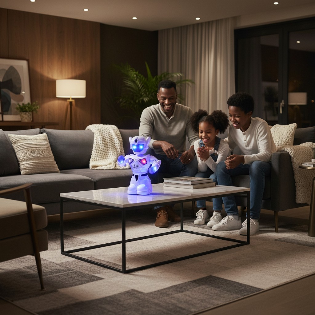 Offrez à votre enfant un compagnon de jeu hors du commun avec le Robot T12 ! Bien plus qu’un simple jouet, c’est un véritable artiste qui s’anime pour le plus grand bonheur des petits. Avec ses mouvements de danse dynamiques et ses rotations fluides, il invite les enfants à bouger et à s’amuser. Ses yeux, son torse et ses mains s’illuminent de lumières LED colorées, créant un spectacle fascinant, surtout dans la pénombre. Accompagné de musiques entraînantes, le Robot T12 transforme n’importe quelle pièce en piste de danse ! Conçu en plastique robuste et sûr, il est le cadeau idéal pour stimuler l’imagination, la coordination et la joie de vivre de votre enfant. Parfait pour les anniversaires et les fêtes à Abidjan et partout en Côte d’Ivoire.