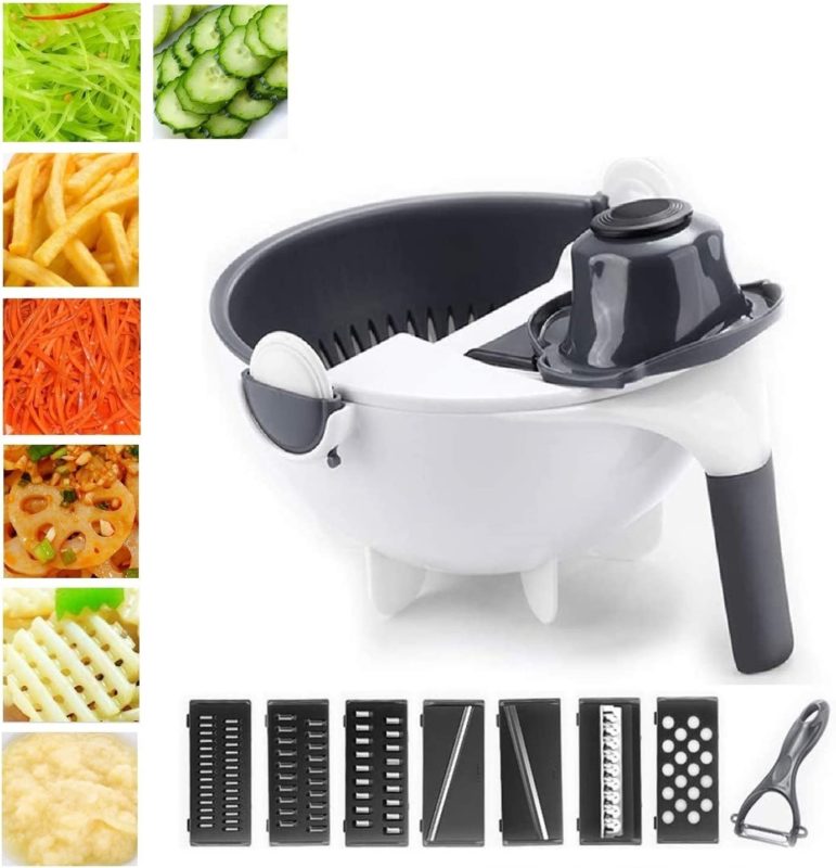 15000 CFA – 20000 CFAPlage de prix : 15000 CFA à 20000 CFACoupe-Légumes Multifonctionnel 12 en 1 avec Panier de Vidange, Trancheuse à Légumes à Rotation Magique, Mandoline