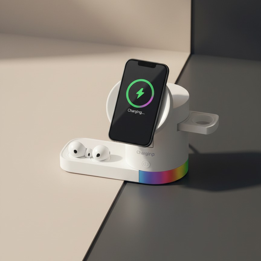 Station de Recharge Sans Fil 3-en-1 avec Lumière d’Ambiance RGB