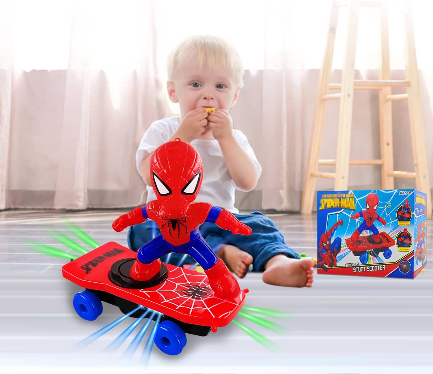 Trottinette SPIDERMAN électrique avec musique et éclairage Stunt pour cadeaux d’enfants