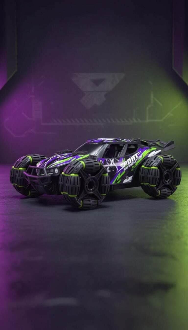 Préparez-vous à redéfinir le jeu avec notre voiture télécommandée Stunt, une véritable démonstration de maîtrise technologique et de design audacieux. Conçue pour les amateurs de sensations fortes, cette voiture n’est pas un simple jouet, c’est une expérience de pilotage immersive. Le secret de sa performance réside dans ses roues Mecanum révolutionnaires, qui lui permettent d’exécuter des figures que vous pensiez impossibles : drifts latéraux fluides, rotations complètes à 360° sur place et une agilité incomparable sur toutes les surfaces. Son design agressif, accentué par des graphismes violets et verts électriques sur une carrosserie noire, ne manquera pas de faire tourner les têtes. Que ce soit sur le bitume, le carrelage ou la terre battue, elle domine le terrain avec une facilité déconcertante. Idéale pour les enfants comme pour les adultes, c’est le cadeau parfait pour des heures d’amusement et de défis. Prenez les commandes et libérez la puissance du drift ultime !