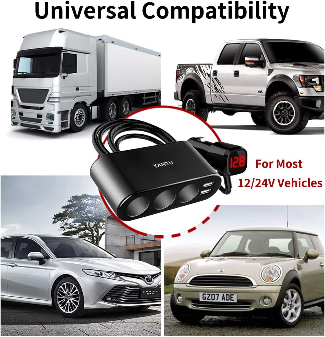 Shop YANTU Répartiteur allume-cigare 3 prises 120 W 3,1 A double USB avec affichage de la tension – Chargeur de voiture 12 V CC pour appareils mobiles (noir)